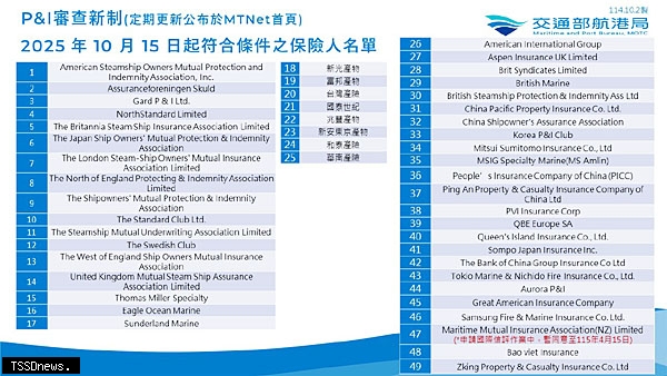 航港局籲船東儘速完成新制P&I投保 10/15上路
