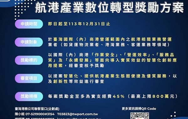 港務公司助攻航港產業數位創新 單案獎勵金提高至800萬