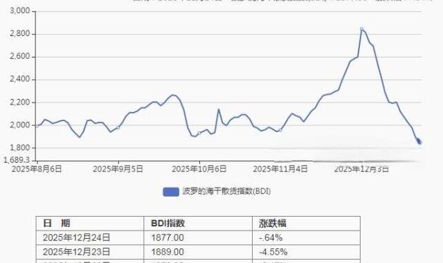 BDI月內跌近一千點較2024年同時期行情仍走高