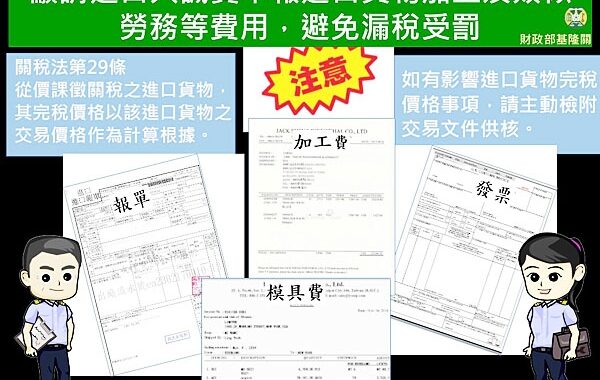 海關籲進口人誠實申報進口加工及類似勞務等費用