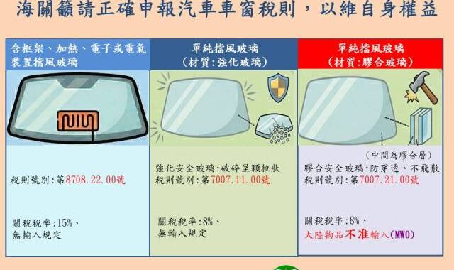海關籲請正確申報汽車車窗稅則 以維自身權益