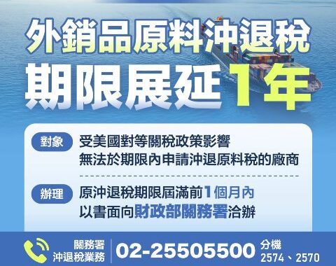 財政部:受美國對等關稅影響 廠商可延長原料稅沖退申請期限
