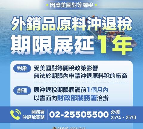 財政部釋令:美對等關稅影響出口者 沖退稅期限展延一年
