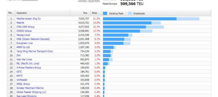 MSC貨櫃船隊運能突破700萬TEU 相當雙子星聯盟總和