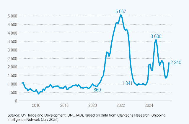 聯合國貿易暨發展會議(UNCTAD)於2025年9月18日在日內瓦發布《2025年海運回顧報告:在動盪中堅持航向》(Review of Maritime Transport 2025, Staying the course in turbulent waters),指出全球航運正面臨高度不確定性、成本上升與成長放緩的挑戰。