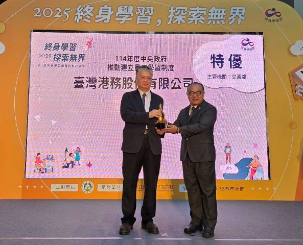臺灣港務公司秉持「員工是企業永續經營的基石,人才永續是支持企業運作的根本」理念,長期致力於員工學習制度與人才發展的推動。繼2023及2024年連續兩年獲得教育部「中央政府推動建立員工學習制度獎勵」優等獎後,今年(2025年)更榮獲特優獎最高殊榮,展現港務公司在培育永續人才與推動學習型組織方面的卓越成果。