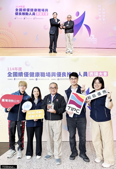 臺灣港務股份有限公司(下稱港務公司)積極推動企業健康文化與員工健康促進,從健康檢查資料分析員工體位、三高與代謝異常高風險族群,據此推動精準化健康促進措施,成效深獲肯定。於衛生福利部國民健康署辦理之「一一四年績優健康職場與優良推動人員評選活動」中,榮獲「健康職場標竿獎︱銀獎」,昨(十)日由港務公司行政副總經理高傳凱代表受獎。