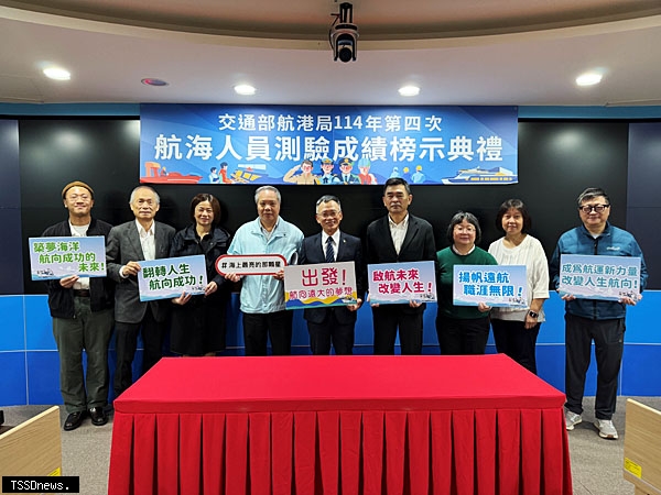 ▲114年第四次航海人員測驗成績榜示典禮督導委員合影。(圖:交通部航港局提供)