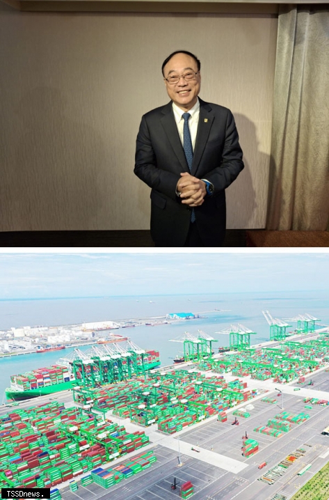 ▲上圖:臺灣港務公司董事長周永暉。(記者周家仰攝) 下圖:高雄港第七貨櫃中心。(圖:臺灣港務公司提供)
