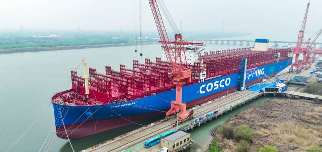 中遠海運甲醇雙燃料貨櫃船”百合花”(LILY)命名,此亦係該公司系列四艘1.6萬TEU巨輪悉數就位。(見圖)