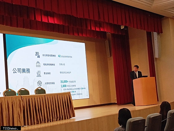 ▲長榮國際儲運法說會,總經理林振芳說明公司業務概況。(記者陳維強攝)